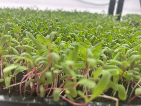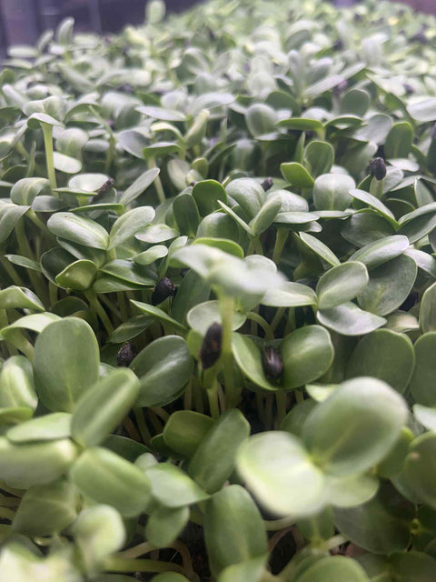 Feel great about what you eat!! We grow our microgreens on 100% coconut husk and our mushrooms off of hardwood sawdust and soy hull pellets using gluten free millet.
